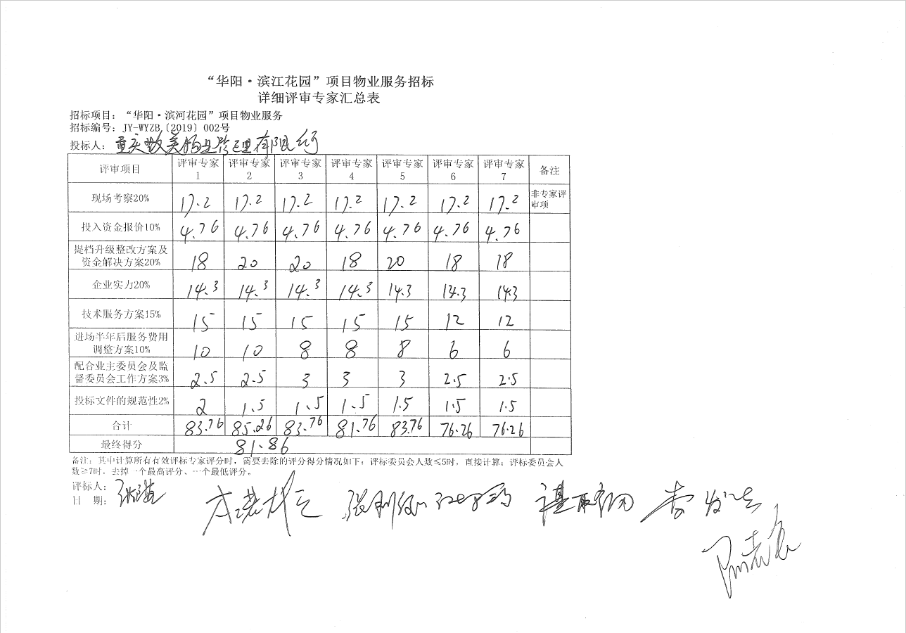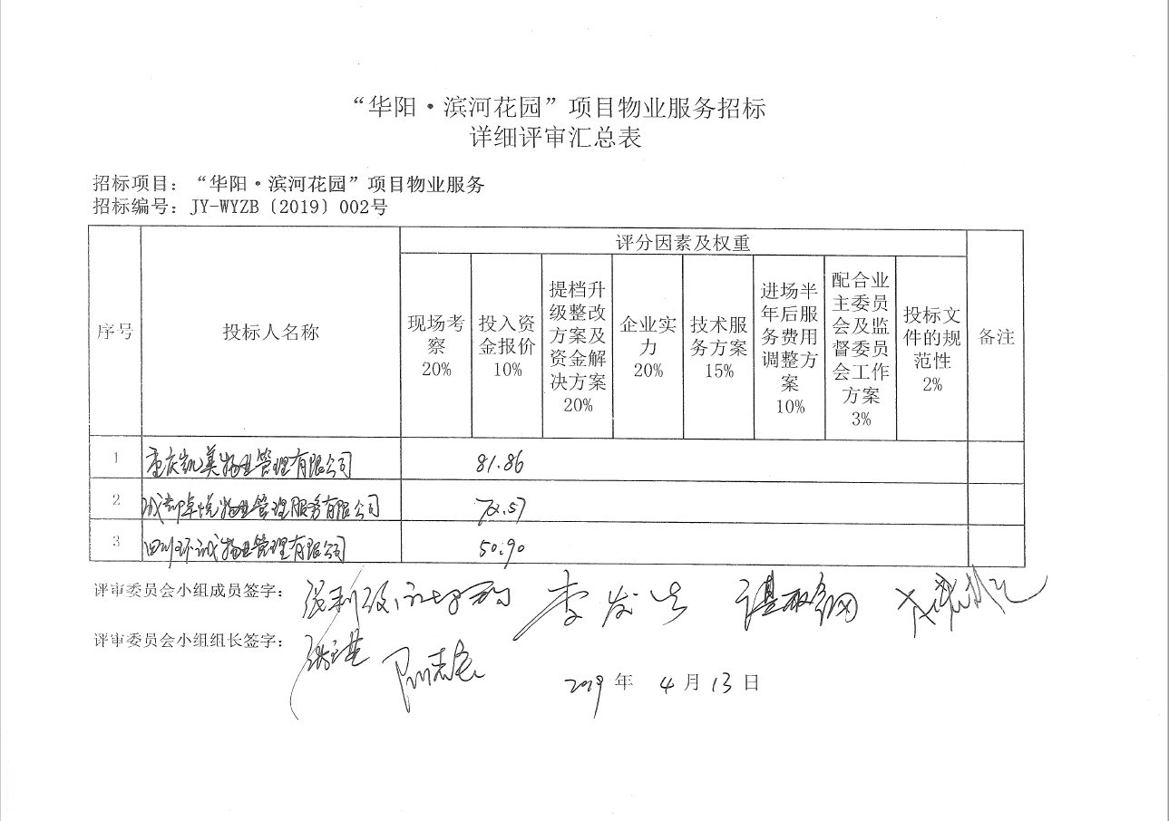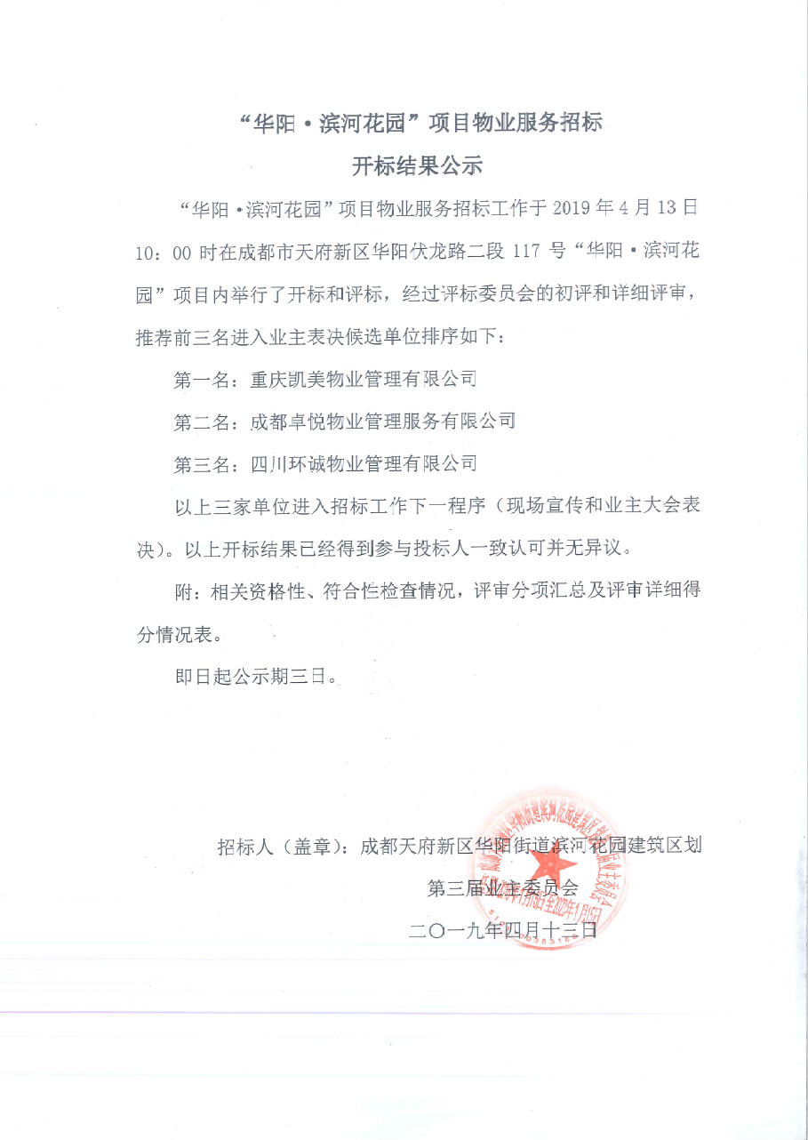 “华阳.滨河花园”项目物业服务招标开标结果公示