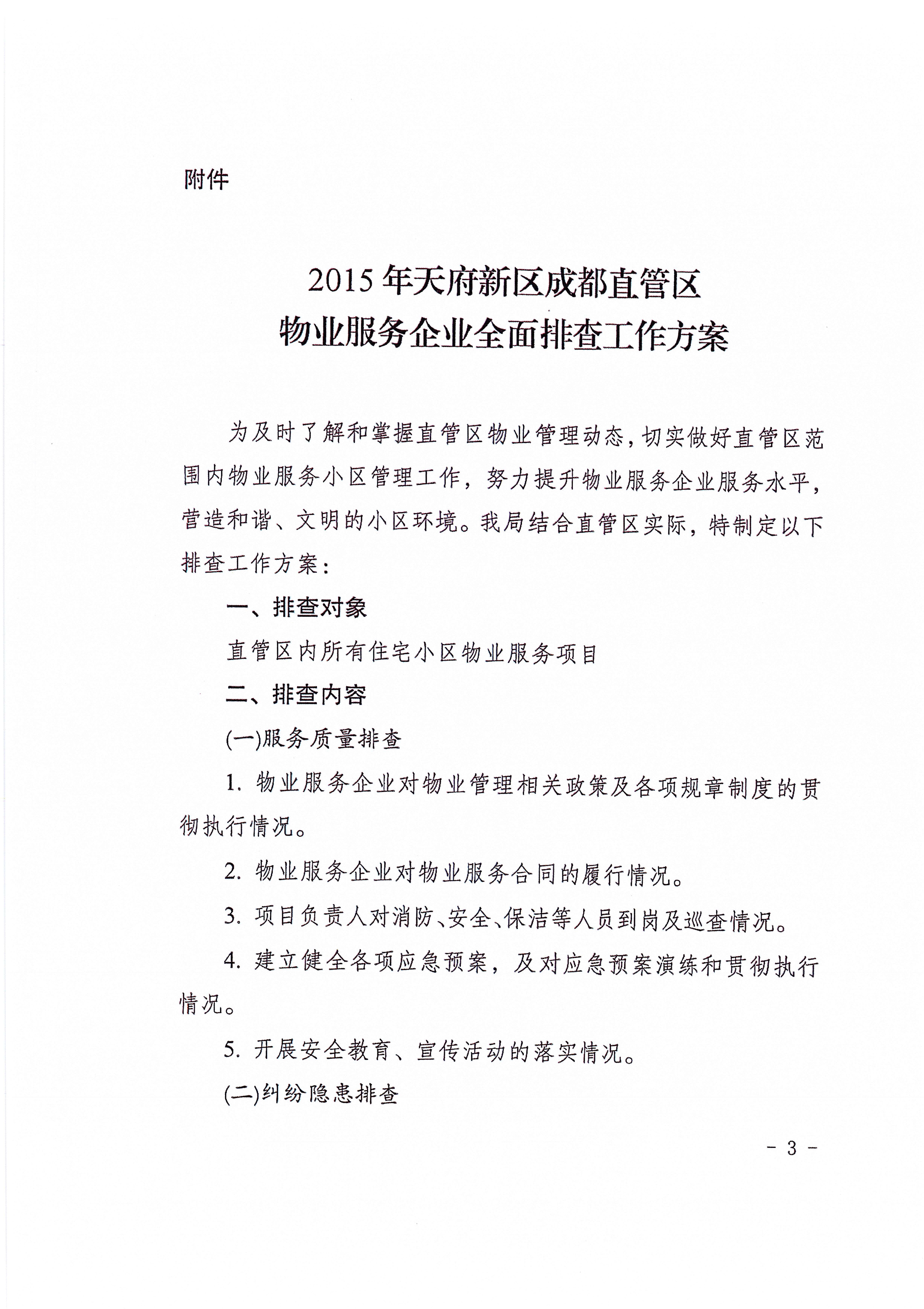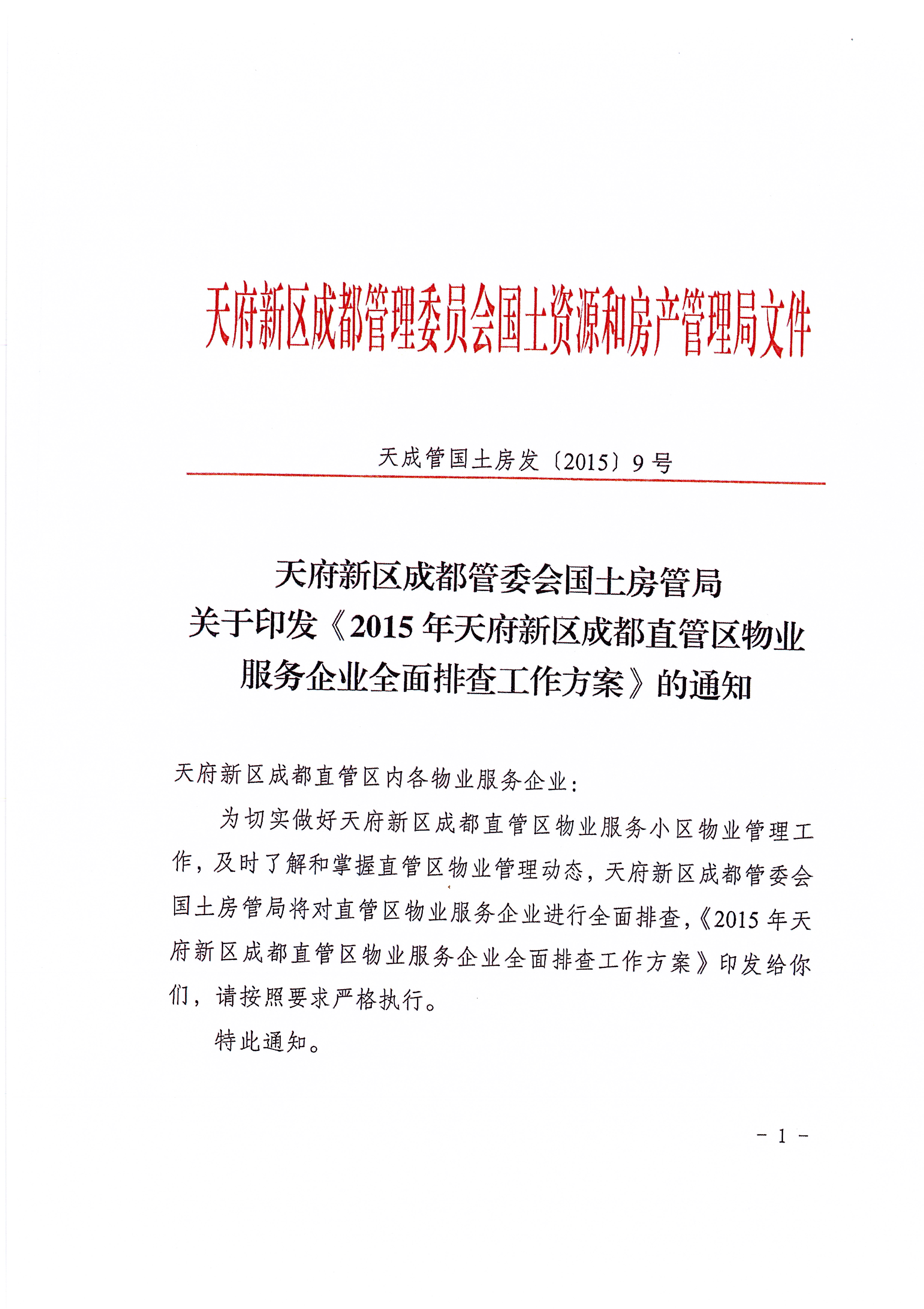 2015年天府新区成都直管区物业服务企业全面排查工作通知