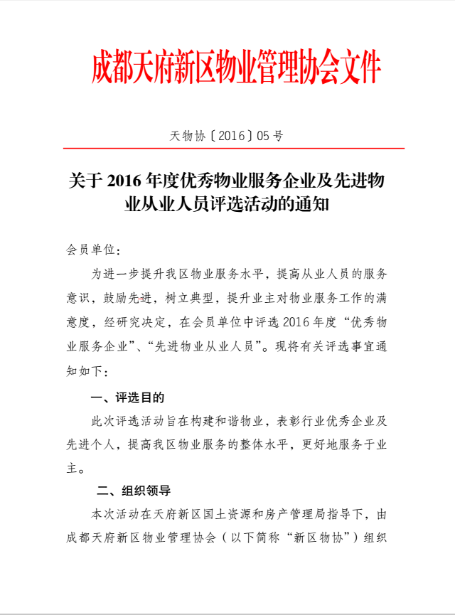 关于2016年度优秀物业服务企业及先进物业从业人员评选活动的通知