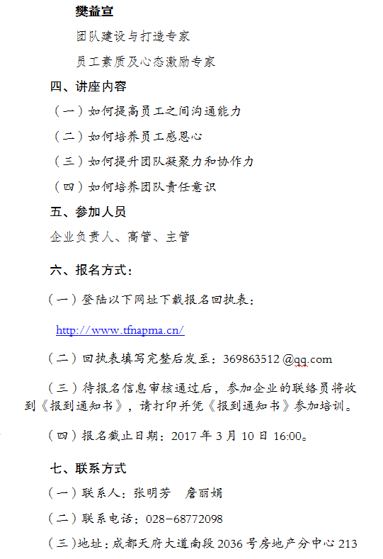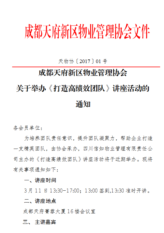 关于举办《打造高绩效团队》讲座活动的通知