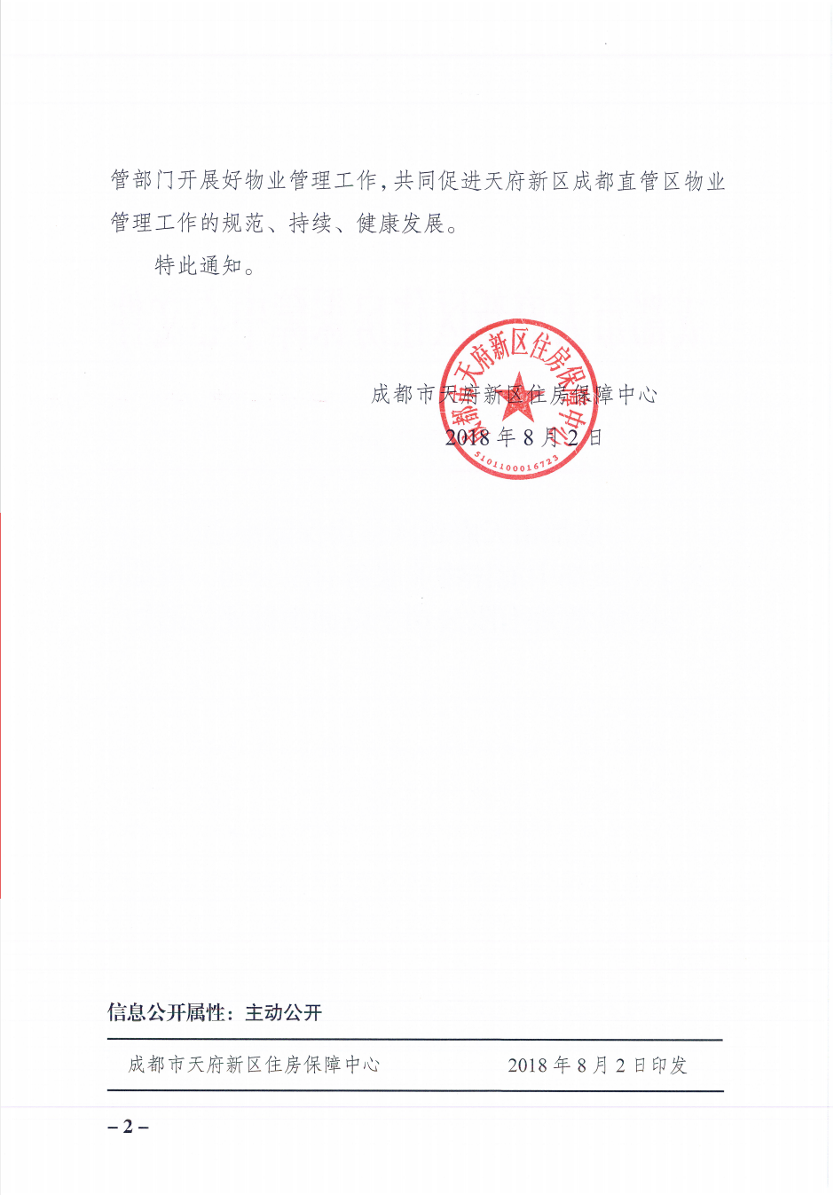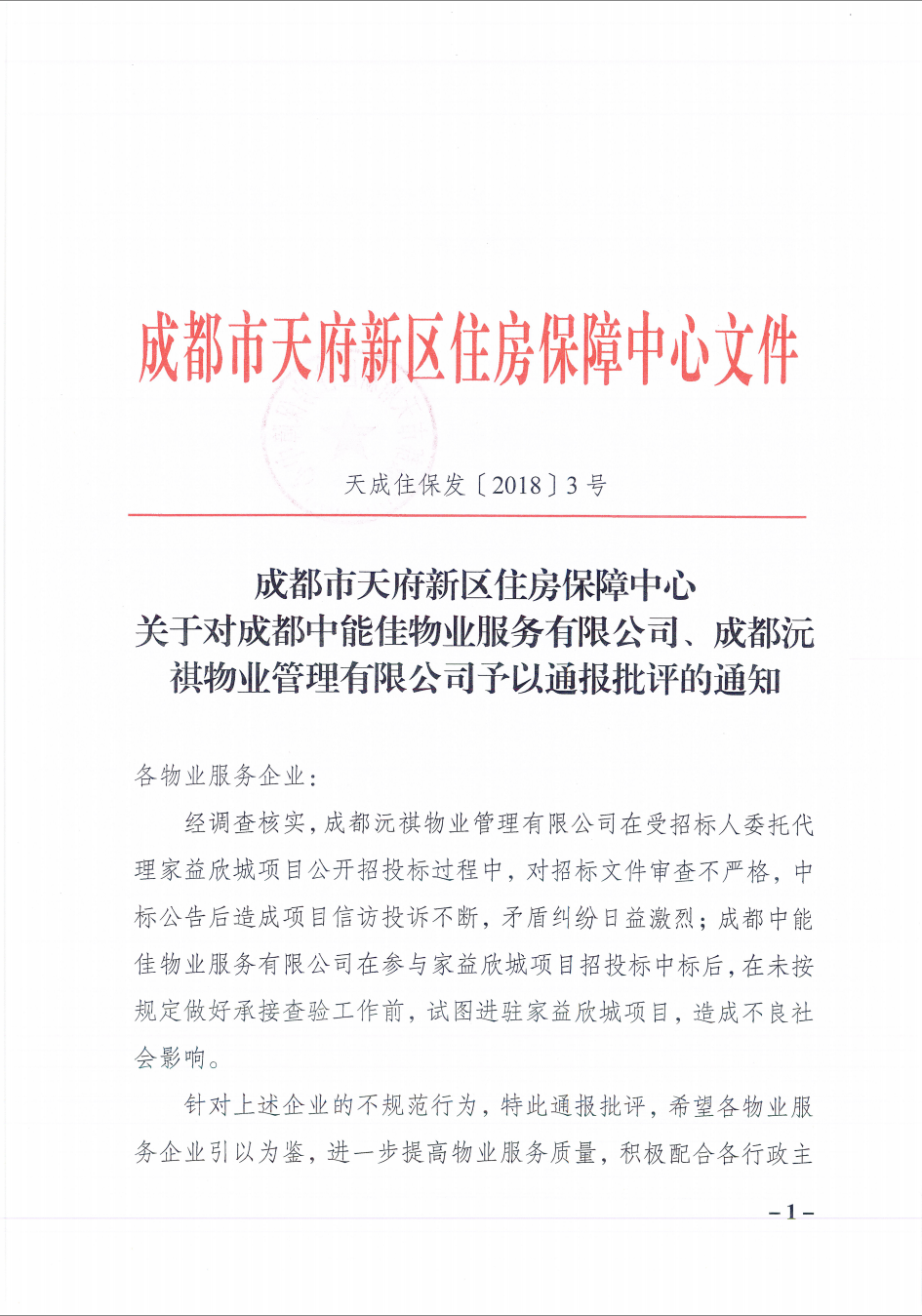 成都市天府新区住房保障中心关于中佳能物业服务有限公司、成都沅祺物业管理有限公司予以通报批评的通知