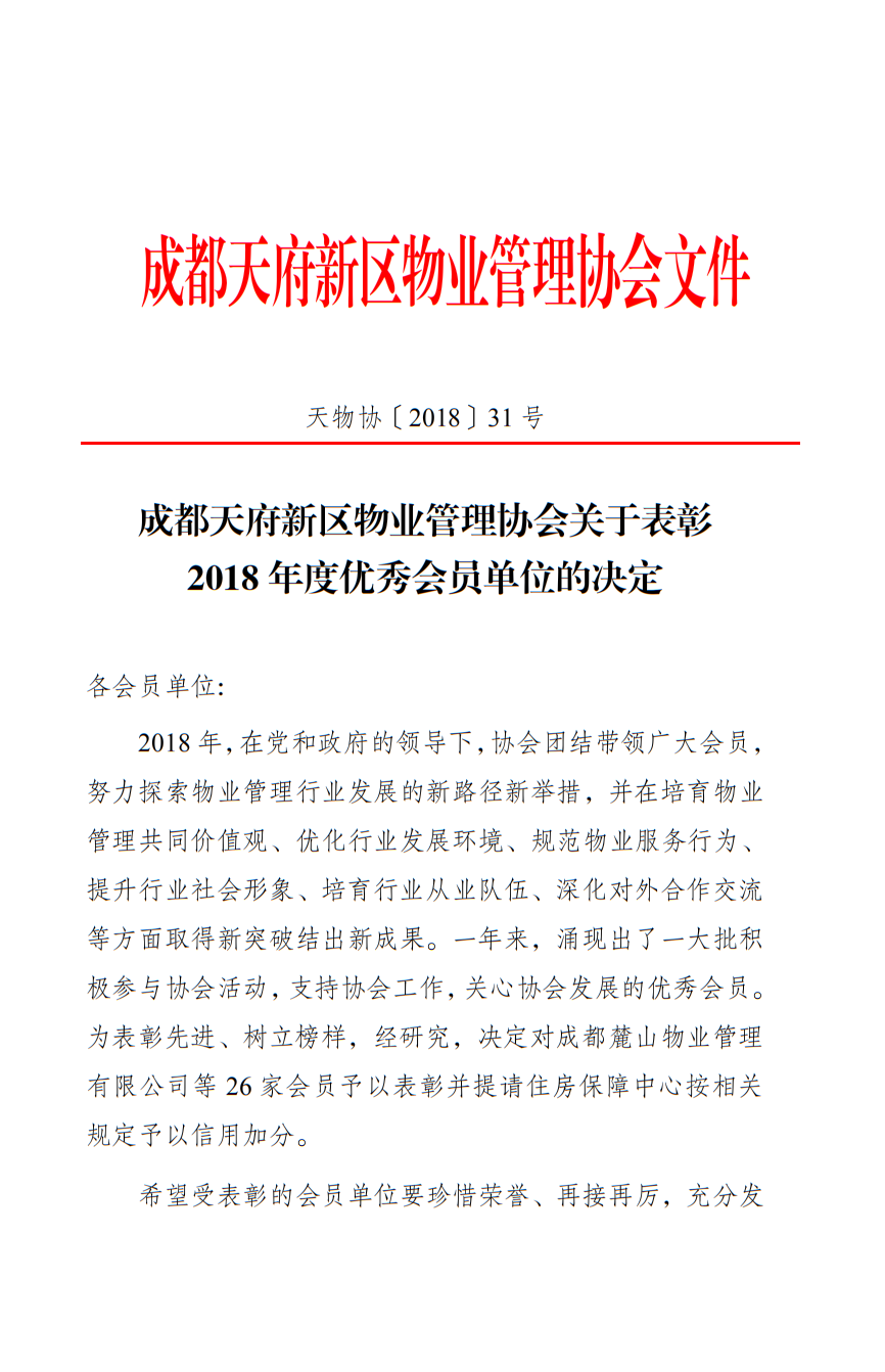 关于表彰2018年度优秀会员单位的决定