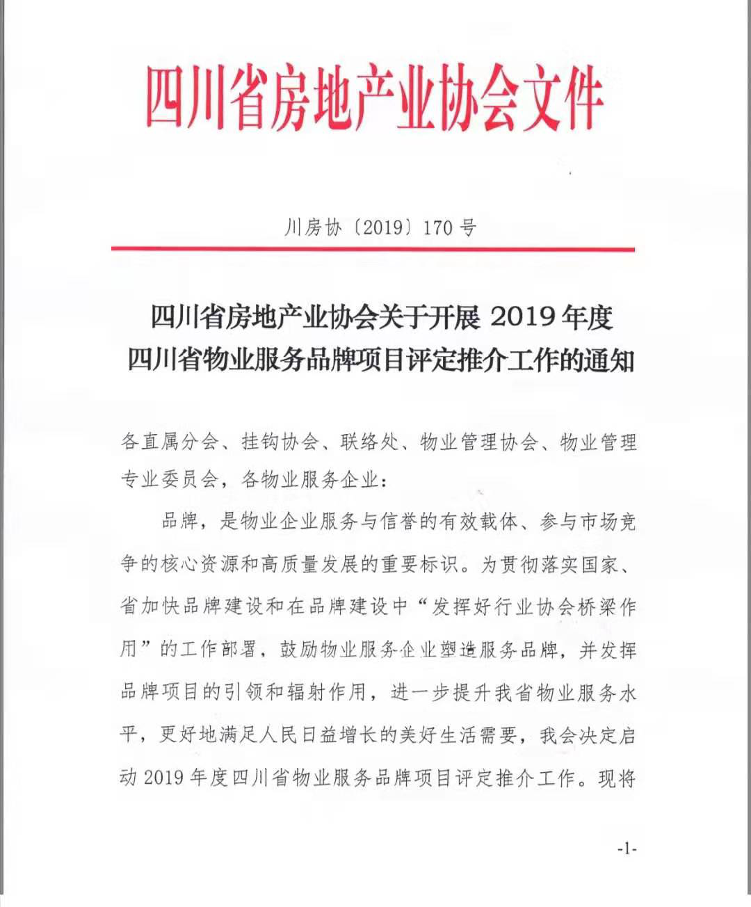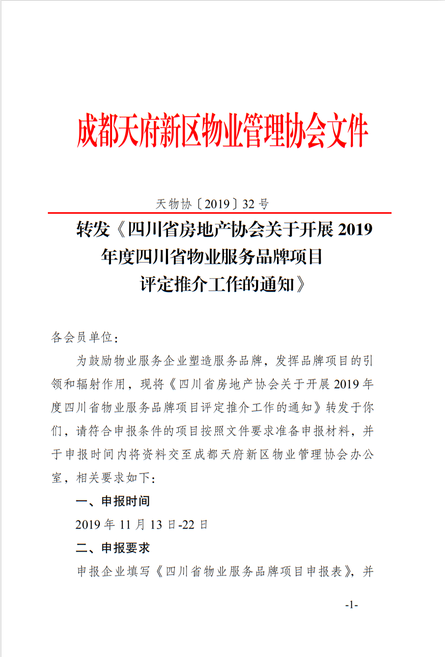 (一)充分认识开展物业服务品牌项目评定推介的重要意义。品牌是企业乃至国家竞争力的综合体现,代表着供给结构和需求结构的升级方向。打造物业品牌项目,服务美好生活需要,是深入贯彻落实五大发展理念,适应新时代社会主要矛盾转化和推动四川高质量发展的具体行动,也是推动物业服务行业持续发展的一项战略任务。各直属分会、挂钩协会、联络处及地方物业协会要高度重视此项工作,将其作为行业主管部门取消物业服务企业资质核定和物业管理师职业资格后,为会员服务的新增举措,落实专人负责,动员会员单位积极参加。
